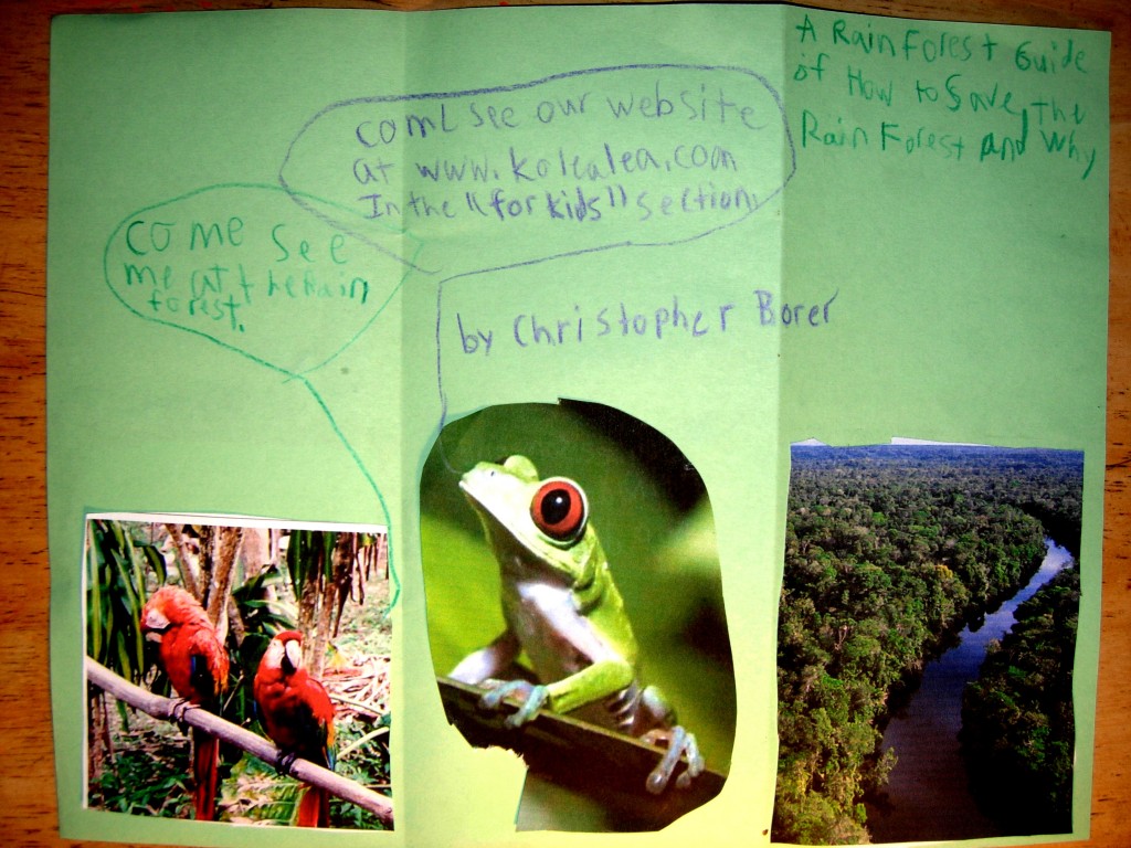 A Rain Forest Guide of How to Save the Rain Forest and Why, Written by Christopher Borer, 7 years old